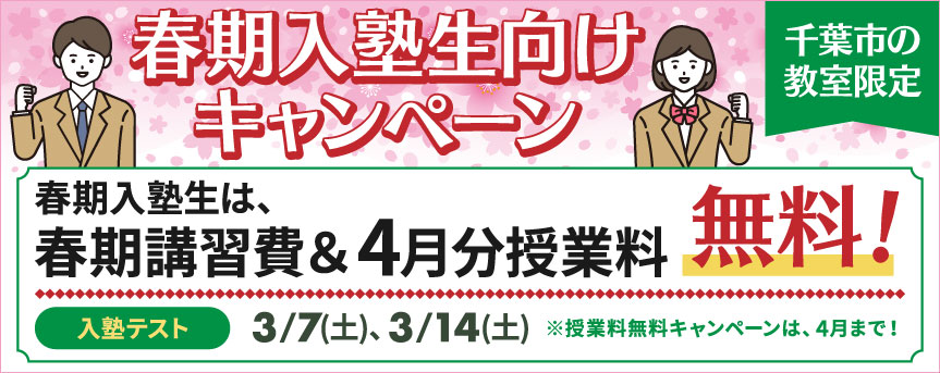 【千葉市の教室限定】春期入塾生向けキャンペーン:春期入塾生は春期講習費&4月分授業料無料! - 2026年2月24日お知らせ
