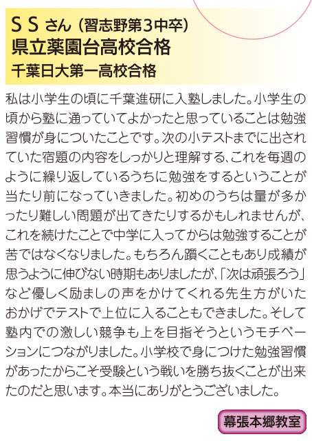 「心かよわせ、学ぶ楽しさ」を千葉進研で。
